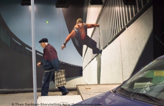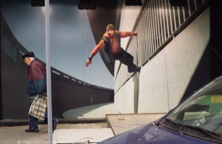 A meeting with Jean Baudrillard in 1995 got Derksen started on the project and the book opens with a quote from the philosopher: “It is dangerous to unmask images, since they dissimulate that there is nothing behind them.” We are then, I presume, intended to see the pictures in this book as an unmasking of images. He says all his photographs are straight, observational pictures, but each acknowledge the ways in which so much of the world is now made up of montages and collisions between the alluring spectacle of commercial images and their settings. As well as Baudrillard, whose own photography was fascinated with trompe l’oeil, Luigi Ghirri and Martin Parr are also relevant—Ghirri with his wry response to consumer culture’s pervasiveness and Parr’s more abrasive depictions of people caught amidst image clichés.