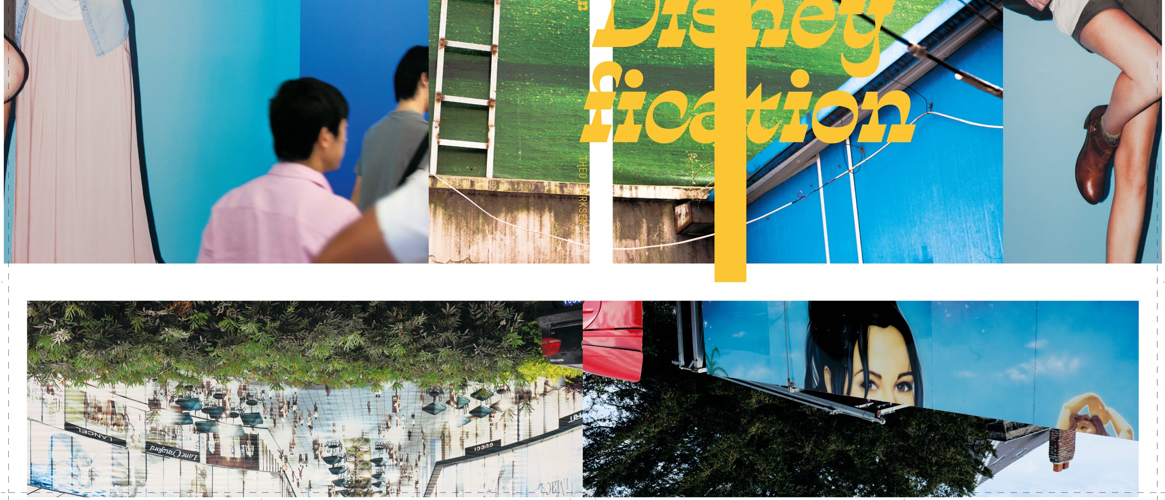 Theo Derksen’s Disneyfication, over twenty years in the making, a book of vivid color double-page spreads, offers a global vision of metropolises, including Bucharest, Berlin, Egypt, Tokyo, Dubai, Chongqing, Shanghai, Beijing, Singapore and Las Vegas. It is by no means total or all-encompassing. There has been a deliberate choice to not take pictures of the big capitalist centres, London and New York. Proportionately most photographs are taken in cities in China.